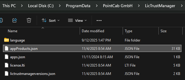 - Make sure LicTrustManager can establish an internet connection. Verify by deleting the file appProducts.json in path %programdata%/PointCab GmbH/LicTrustManager and whether this will be downloaded again after restarting Origins